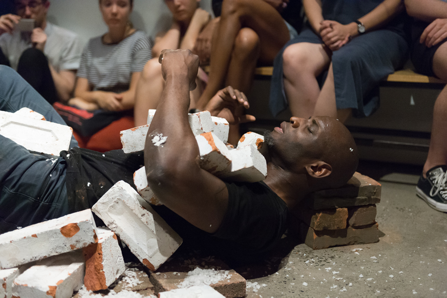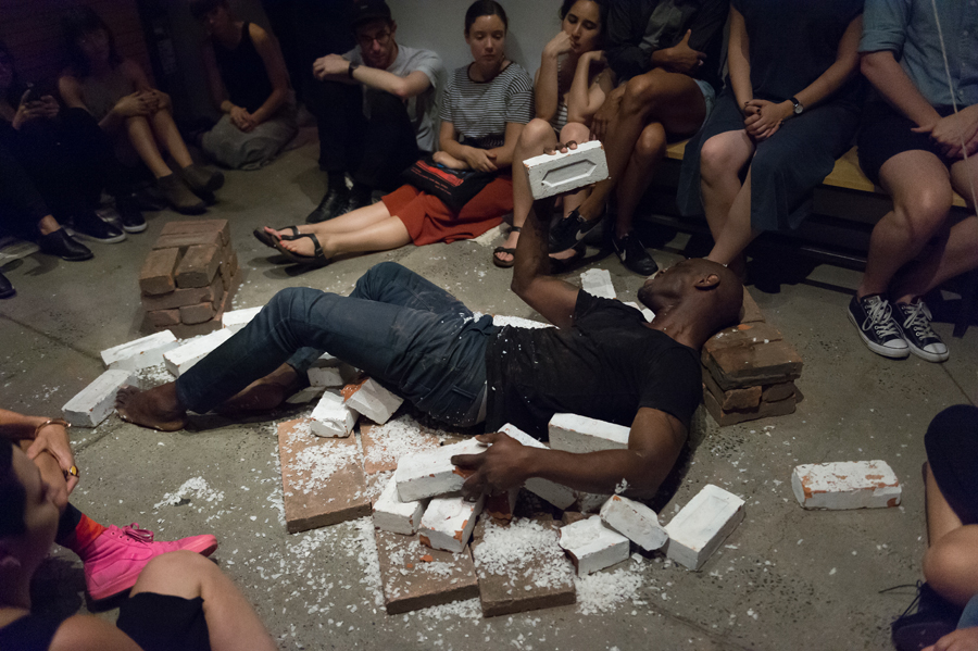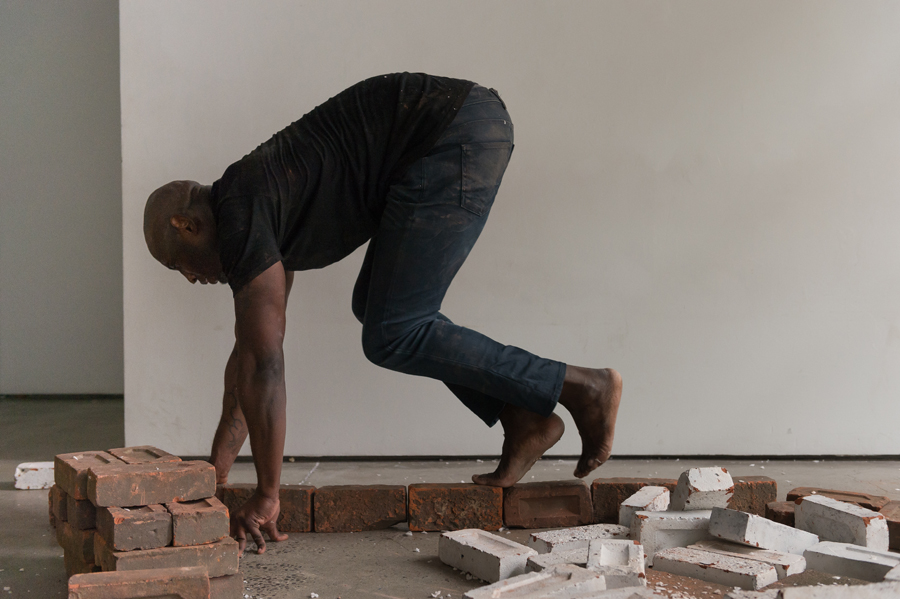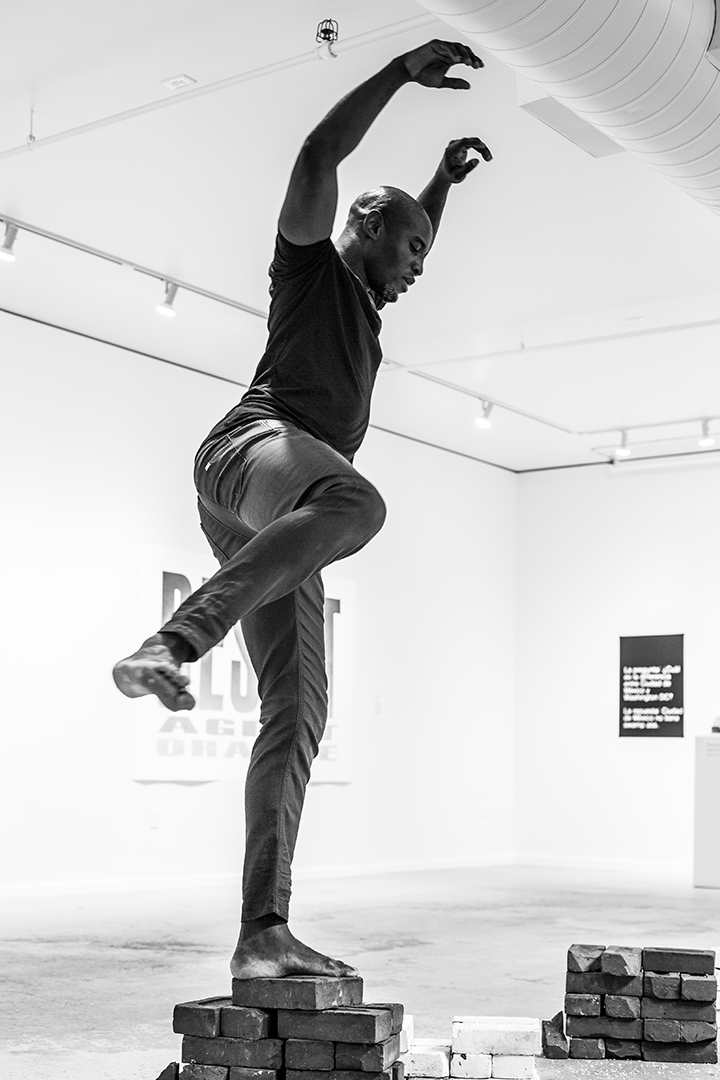 Gregory King works to create places of refuge within the gallery. His signature approach considers dance as a social text, communicating rituals of experience. So, as he negotiates his Blackness through lived rituals, he reminds himself not to stop to ask permission or forgiveness.