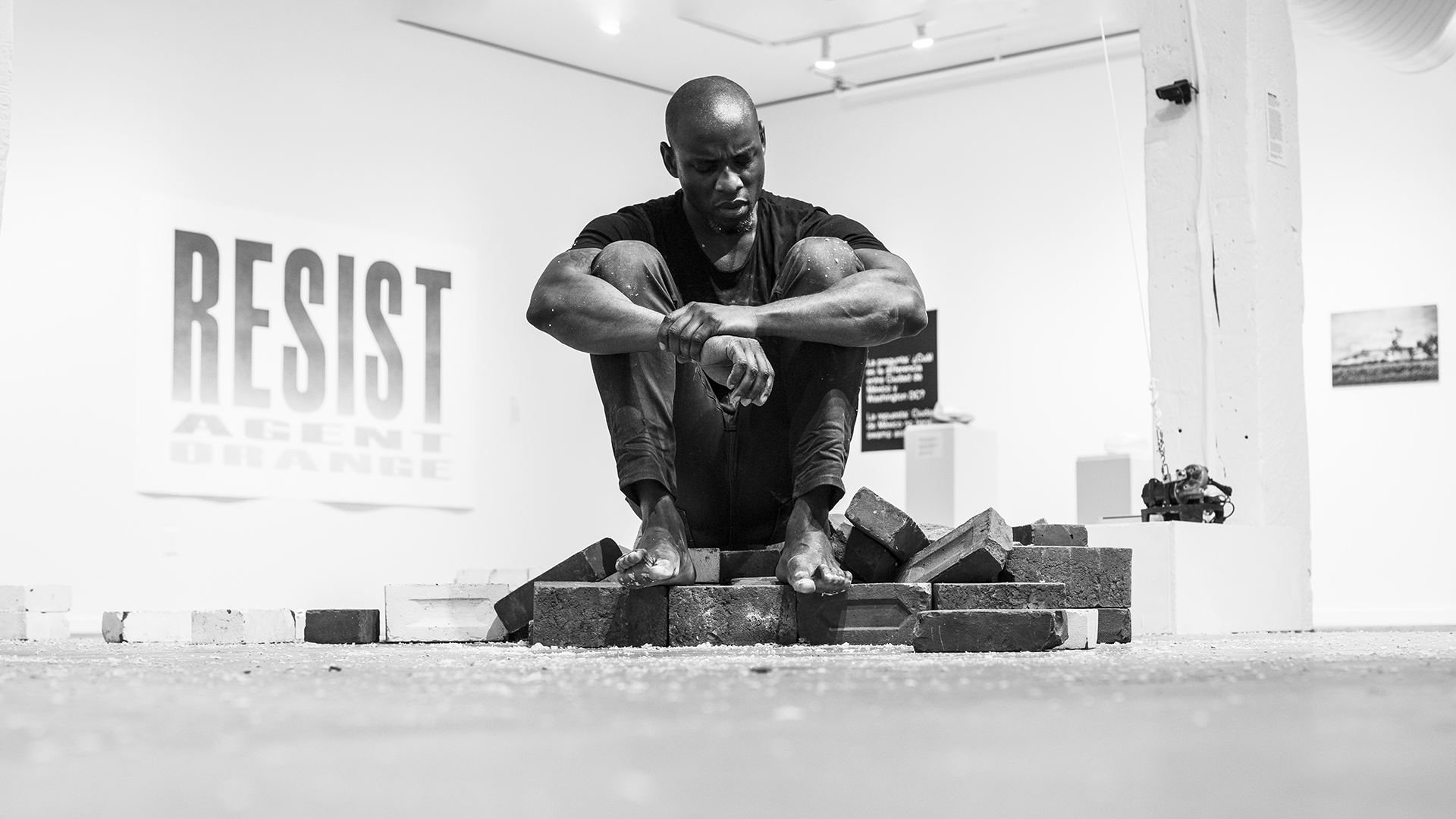 Gregory King works to create places of refuge within the gallery. His signature approach considers dance as a social text, communicating rituals of experience. So, as he negotiates his Blackness through lived rituals, he reminds himself not to stop to ask permission or forgiveness.