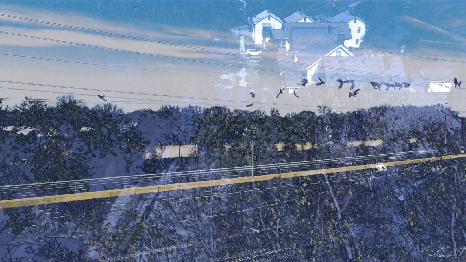 This film marks the culmination of the artist’s Akron Soul Train residency, during which she spent time working with and learning from unhoused communities in Northeast Ohio. Shot primarily from a drone’s perspective, it examines the tension between collective care and algorithmic control amid an era of expanding police surveillance. Poetic texts by Young, voiced by artist-activist Emphraim Nehemiah, consider how we construct safety as compared to enacting control. Through an interplay of abstracted language and imagery, the film reveals a range of emotional and political distances.