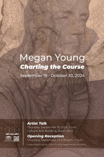 Megan Young’s interactive installation in the CAB Gallery is a new commission maping the complexities of inherited histories. The project explores the intersections of AI technology, digital heritage, and states of transition through physical and digital materialities.