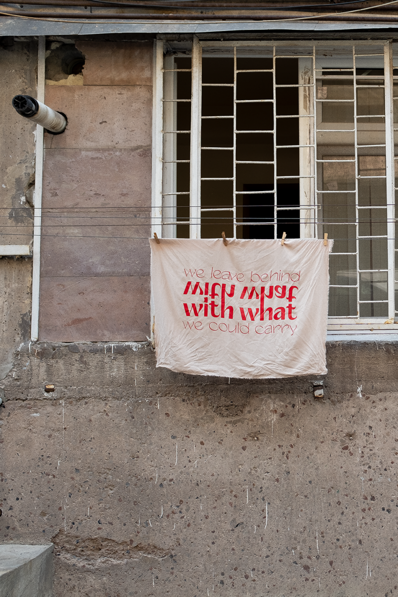 This multi-year project began with a simple gesture as part of a socially engaged residency in Yerevan, Armenia. Young connected with Armenian artists and feminist groups through one-on-one interviews and casual conversations. The project title and text emerged from those exchanges by asking what responsibilities we embrace, and what we shed as we travel across borders and through time.